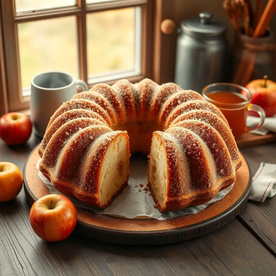 There’s something magical about the moment you unmold this Apple Cider Donut Cake — that deep golden color, the sugared crust catching the light, the scent of warm cinnamon wafting through the kitchen. Presentation is simple, but when done right, it turns a humble cake into a showstopper.