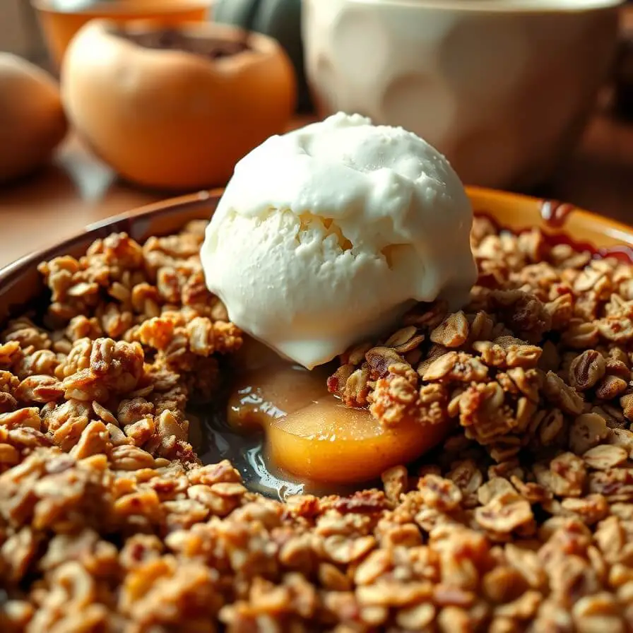 Add contrast. A dollop of cold vanilla ice cream or whipped cream creates the perfect hot-and-cold balance. I love to sprinkle a little cinnamon sugar or crushed pecans on top for a rustic finish. If you’re serving guests, drizzle a thin ribbon of caramel or maple syrup across the top just before bringing it to the table — it adds a golden sheen that makes everyone’s eyes light up.