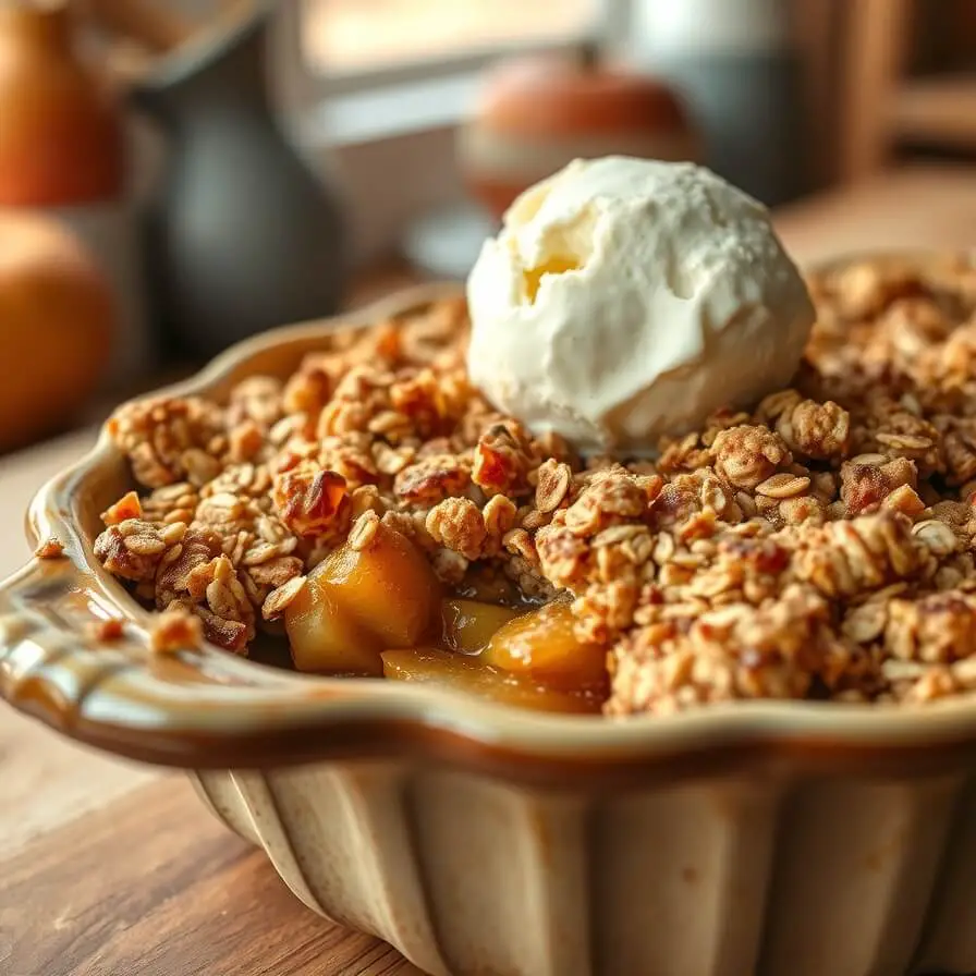 Add contrast. A dollop of cold vanilla ice cream or whipped cream creates the perfect hot-and-cold balance. I love to sprinkle a little cinnamon sugar or crushed pecans on top for a rustic finish. If you’re serving guests, drizzle a thin ribbon of caramel or maple syrup across the top just before bringing it to the table — it adds a golden sheen that makes everyone’s eyes light up.