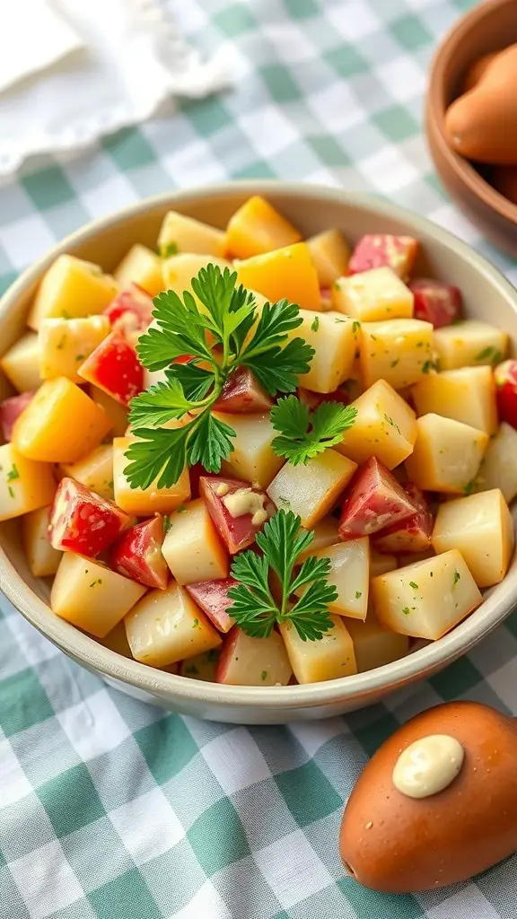 To make this salad, you’ll need some diced potatoes, a handful of fresh herbs, and a simple mustard dressing. Start by boiling the potatoes until tender, then let them cool. Toss them with chopped parsley and a dressing made from mustard, olive oil, and a splash of vinegar.