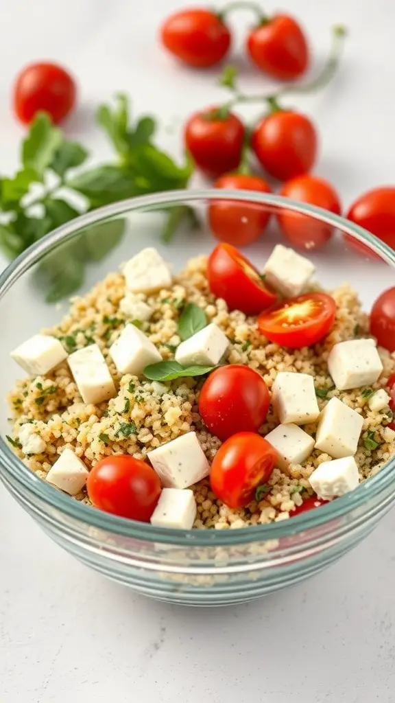 To make this salad, start with cooked quinoa as your base. Toss in halved cherry tomatoes, diced feta, and fresh herbs like parsley or basil. A drizzle of olive oil and a squeeze of lemon juice brings everything together.