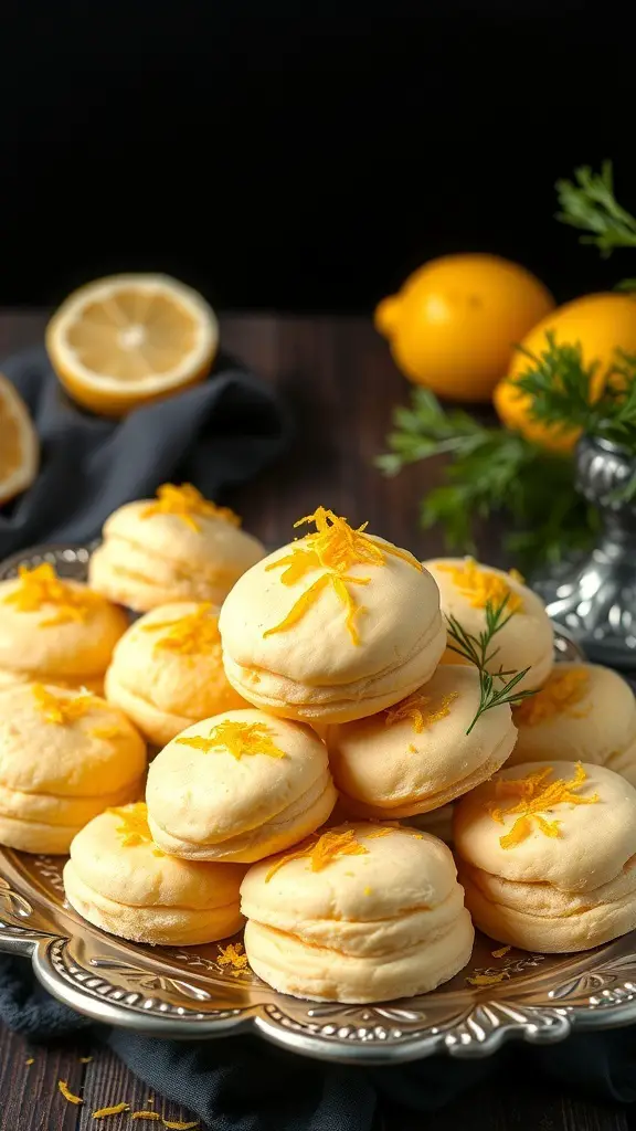 These Zesty Lemon and Dill Biscuit Bites are a delightful treat that brings a burst of flavor to any gathering. The image showcases a beautiful platter filled with soft, lemony biscuits topped with a sprinkle of bright yellow zest. Each bite promises a refreshing taste that balances the tartness of lemon with the aromatic hint of dill.