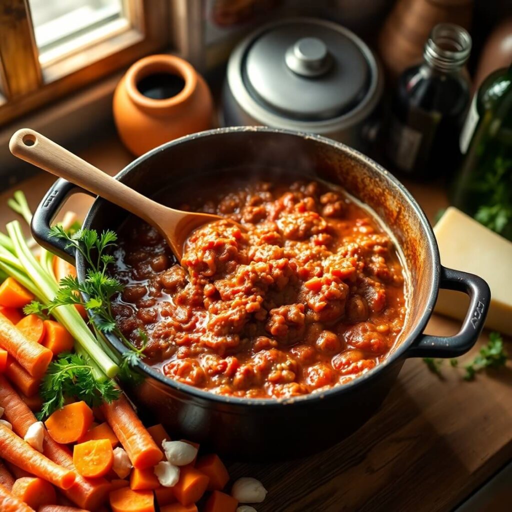 - Use a mix of meats – Combining beef and pork creates a deeper, more layered flavor. Don’t be afraid to use pancetta or veal if you’re feeling fancy.