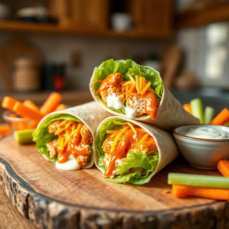 Plating also makes a difference. I often place the sliced wraps on a wooden board or a large serving platter with a small bowl of ranch or blue cheese dressing on the side for dipping. Adding a handful of fresh vegetables, like celery sticks or carrot sticks, gives the platter a classic buffalo-style touch.