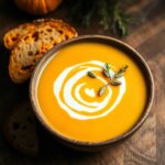 One of my favorite touches is to swirl a drizzle of cream or coconut milk over the top and use the tip of a knife to create a pretty design. A sprinkle of toasted pumpkin seeds or croutons adds texture and makes the bowl more visually appealing. For an elegant finish, I often scatter a few fresh thyme leaves or crispy sage on top—the pop of green against the golden-orange soup is stunning.