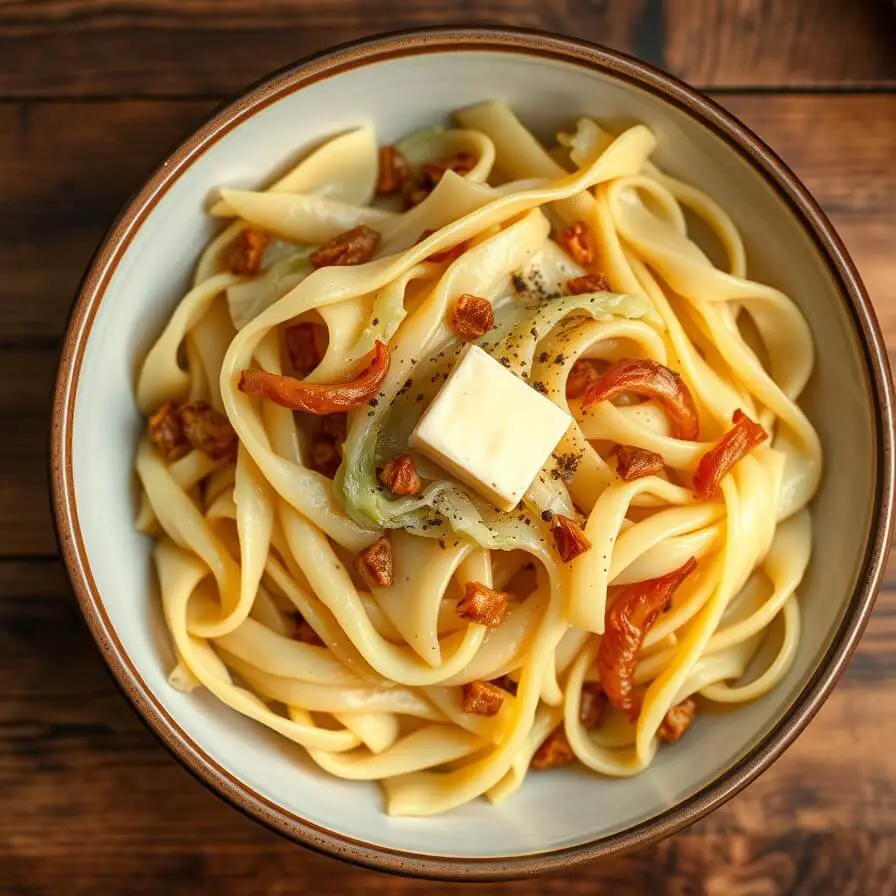 - Cooking time: 20–25 minutes for sautéing the cabbage and onions, boiling the noodles, and combining everything together.