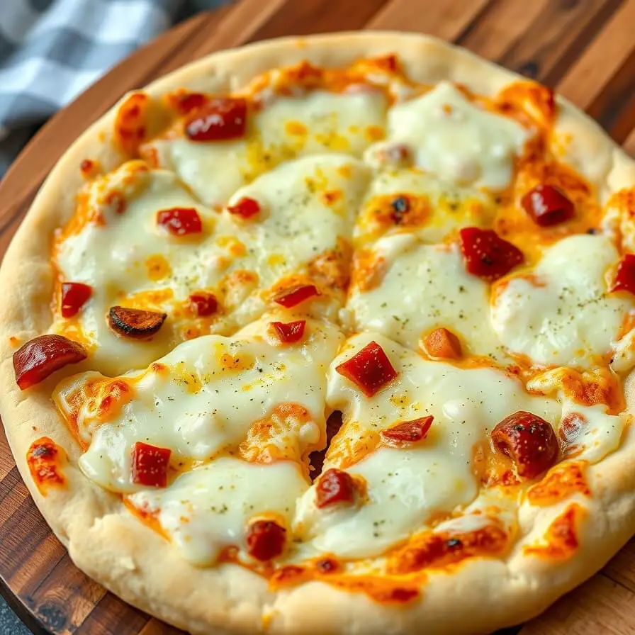 Let the crust cool for a minute before slicing—it helps it firm up and makes the slices cleaner. If I’m serving it family-style, I like placing it on a wooden board because it gives that rustic “pizza night” feel. You can also drizzle a bit of melted butter or place a few slices of mozzarella on top for a glossy finish.