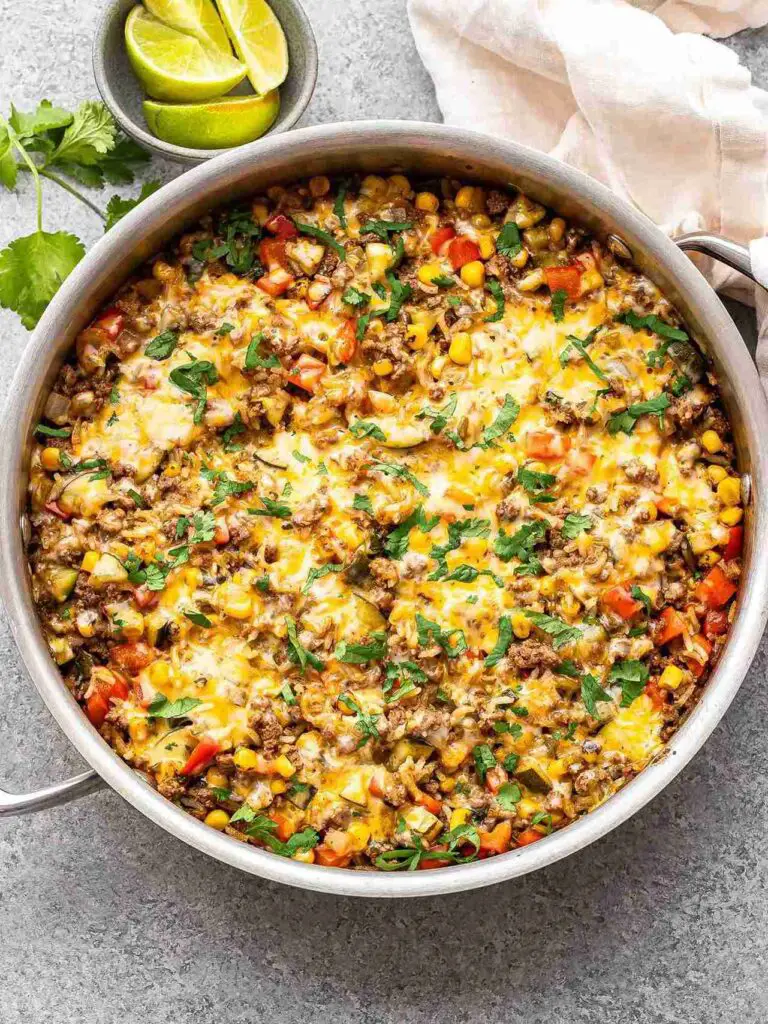 9. Cheesy Ground Beef Skillet