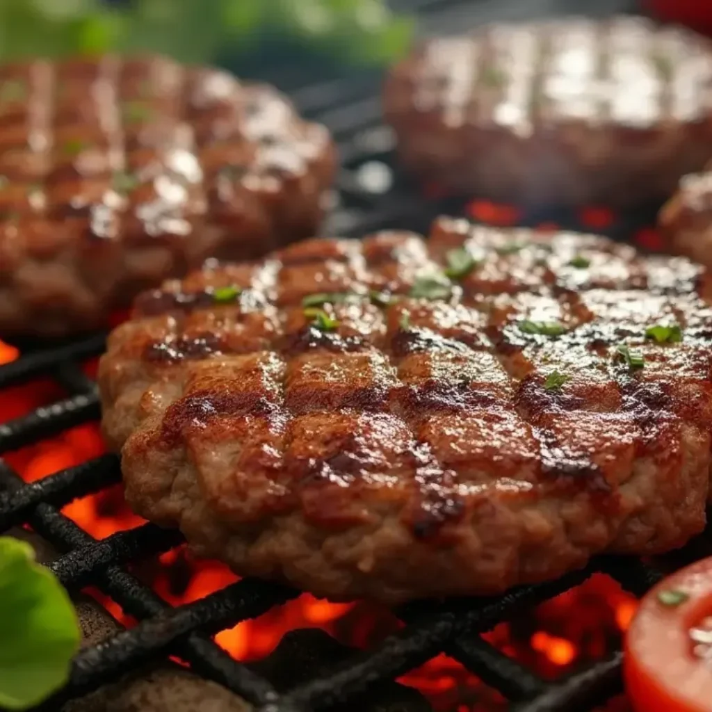 Juicy beef patties sit over open heat, with a crisp outer layer forming as they cook. Grill marks add texture while locking in all the natural juices inside. Light seasoning keeps the flavor bold without needing anything extra.