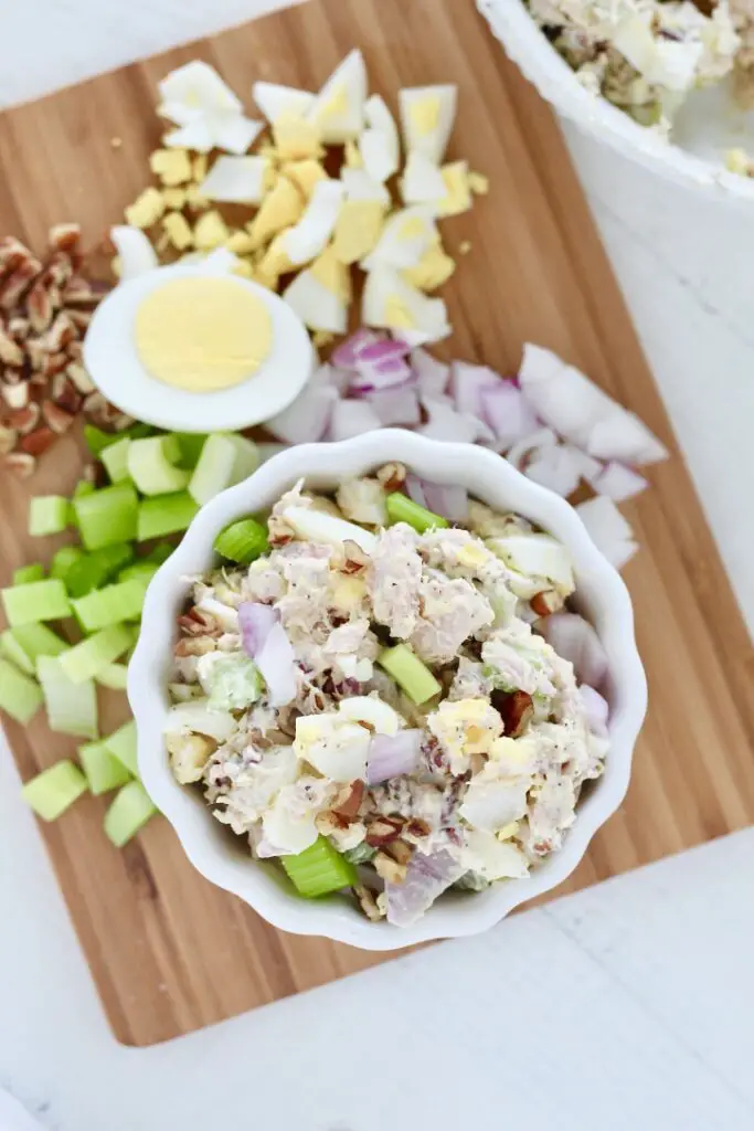 Chopped eggs mix with tender meat, creating a creamy and filling texture in every bite. Small pieces of onion and herbs add a slight crunch that keeps things interesting. Rich dressing ties everything together without making it too heavy.