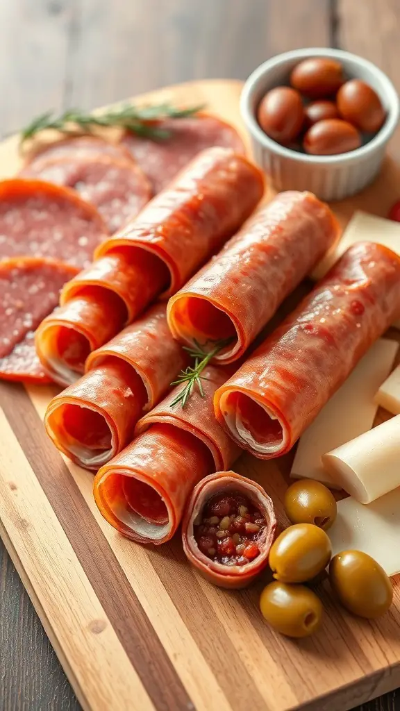 To make these roll-ups, you’ll need some thinly sliced salami and your favorite cheese. Simply lay a slice of cheese on top of the salami, roll it up tightly, and secure it with a toothpick if needed. You can even add a bit of cream cheese or a spicy spread inside for an extra kick.