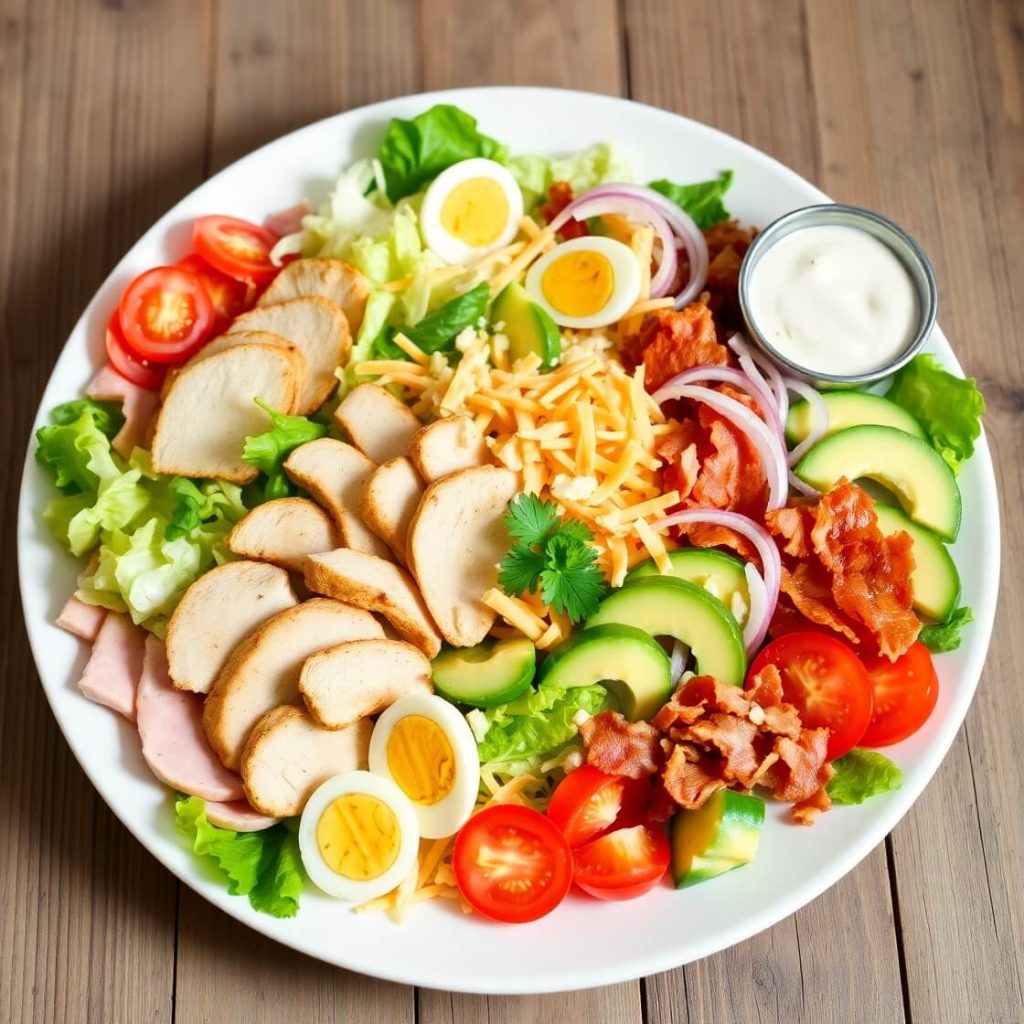 The thing I love most is the balance. You’ve got crunchy lettuce, creamy cheese, rich meats, and hard-boiled eggs—all tied together with your dressing of choice. It’s a classic American dish that hits every note on the flavor chart, and the best part is how flexible it is. Whether you’re using leftover roast chicken, deli ham, or turkey slices, it always feels fresh and new.