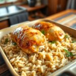 This chicken and rice casserole is the kind of recipe that feels like comfort on a plate—warm, creamy, and deeply satisfying. Long-grain rice simmers in savory broth, tender chicken cooks right on top, and everything blends into a cozy, flavorful dish that tastes like it took hours to make. It’s simple enough for a weeknight dinner but comforting enough to serve to guests. The leftovers reheat beautifully, the ingredients are pantry-friendly, and the whole experience feels like a nod to classic home cooking. If you’re craving a dish that’s easy, dependable, and full of hearty flavor, this casserole delivers every single time.