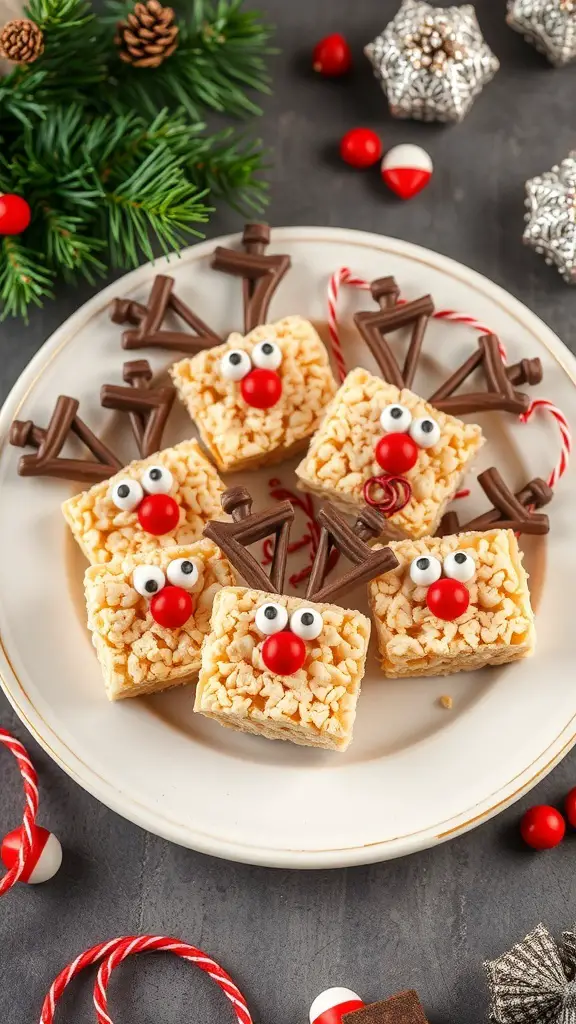 To create these delightful snacks, you’ll need simple ingredients like Rice Krispies, marshmallows, butter, chocolate bars, and candy eyes. Start by making the Rice Krispie mixture and shaping it into squares. Once cooled, add chocolate antlers and candy decorations to bring your reindeer to life.
