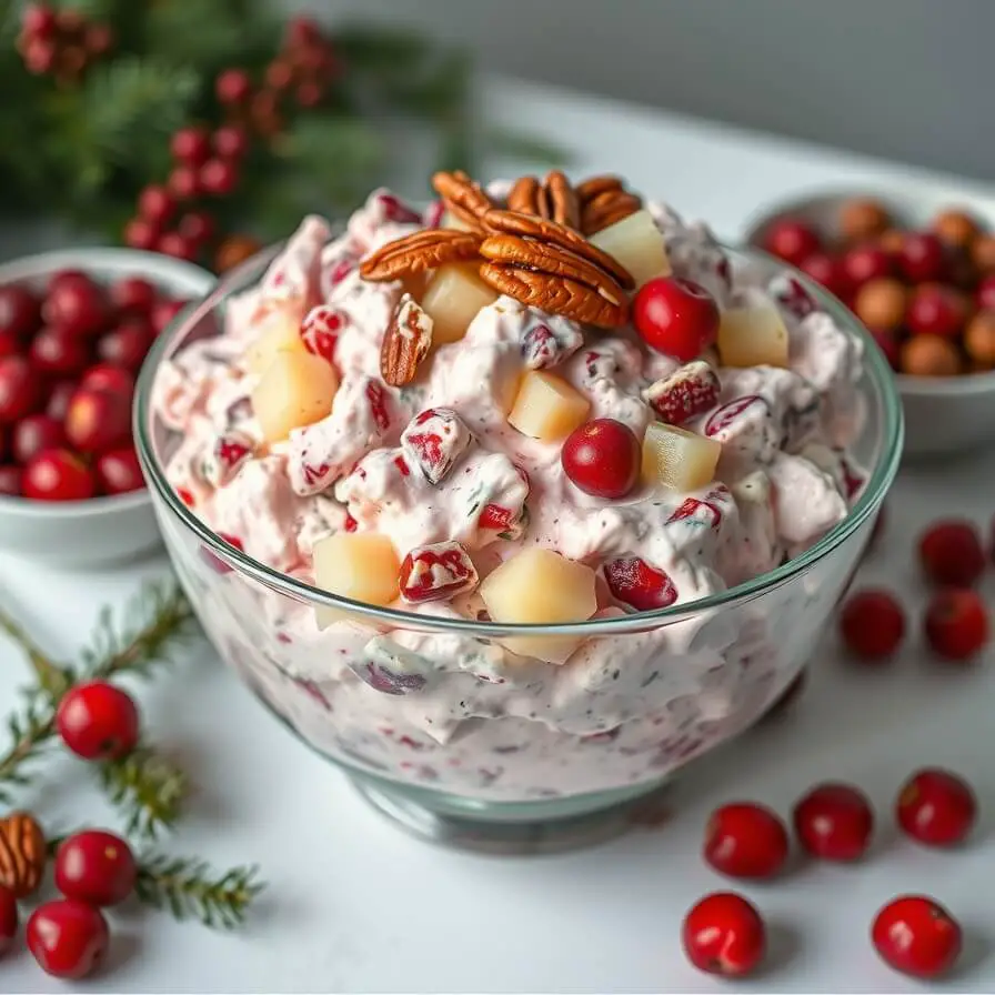 This version is a balance of textures and flavors: the tartness of fresh cranberries, the gentle sweetness of pineapple, the crunch of apples and pecans, and the creamy softness that ties everything together. It’s simple, comforting, and—if you ask my family—absolutely essential at any gathering.