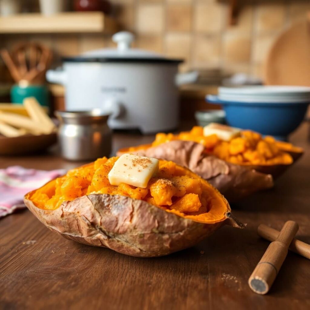 I usually set mine on low before I head out in the morning. By the time dinner rolls around, they’re perfectly tender and ready to be served. If you’re pressed for time, the high setting is a great option too—you’ll still end up with fluffy, soft sweet potatoes without hovering over the stove.