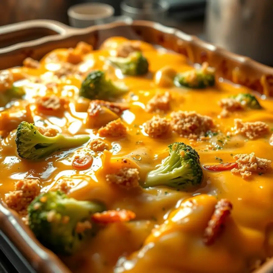 The flavor combination is comforting but versatile. Tender chicken, bright green broccoli, and a creamy cheese sauce make each bite feel like a warm hug. I love the way the cheese melts over the top, forming a golden crust that’s slightly crispy at the edges while still gooey in the center. The dish is hearty enough to serve as a main meal but can also be paired with a simple side salad or garlic bread to create a full, satisfying dinner.
