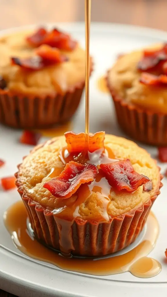 These Maple Bacon Muffins are a delightful twist on traditional muffins. Imagine a soft, fluffy muffin topped with crispy bacon and drizzled with sweet maple syrup. The combination of savory and sweet makes them perfect for breakfast or a snack. The image shows these delicious muffins, showcasing their golden tops and the tempting maple drizzle cascading down.