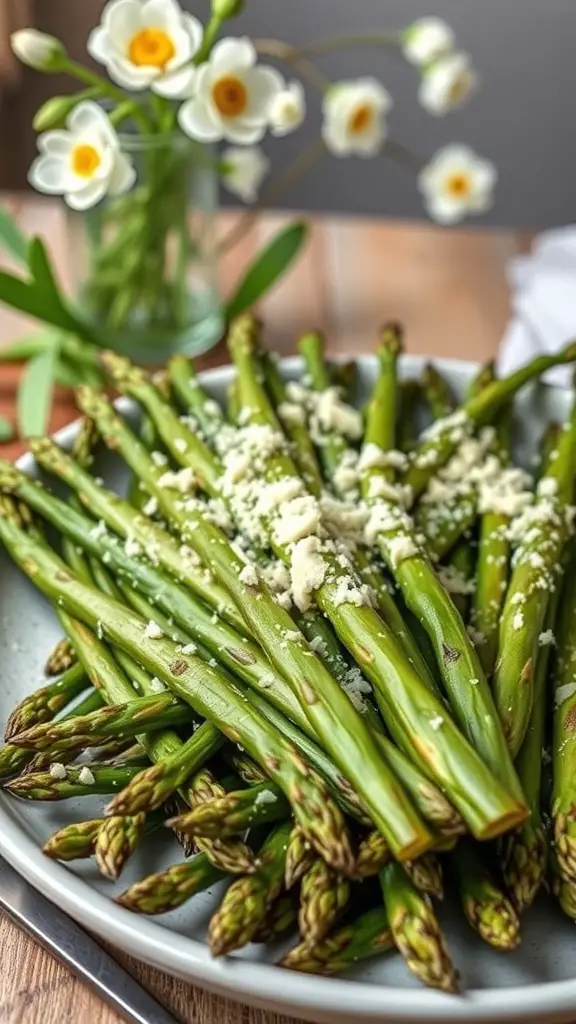 To make this dish, you’ll need fresh asparagus, olive oil, salt, pepper, and grated Parmesan. Start by preheating your oven to 400°F (200°C). Toss the asparagus in olive oil, sprinkle with salt and pepper, and roast for about 15-20 minutes until tender. Just before serving, sprinkle the grated Parmesan on top for that extra flavor kick.