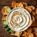 If I’m serving it for guests, I like to surround the bowl with colorful dippers: sliced cucumbers fanned like cards, stacks of crackers, warm pita wedges, or crispy bagel chips. Adding some fresh herbs (especially chives) as a garnish gives a pretty green contrast that makes the whole platter feel intentional instead of rushed.