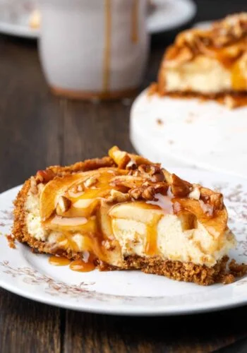 Each slice is layered with juicy apple flavor and a velvety caramel drizzle. The cake is moist and tender, with a perfect balance of sweetness and spice that makes it ideal for fall gatherings.