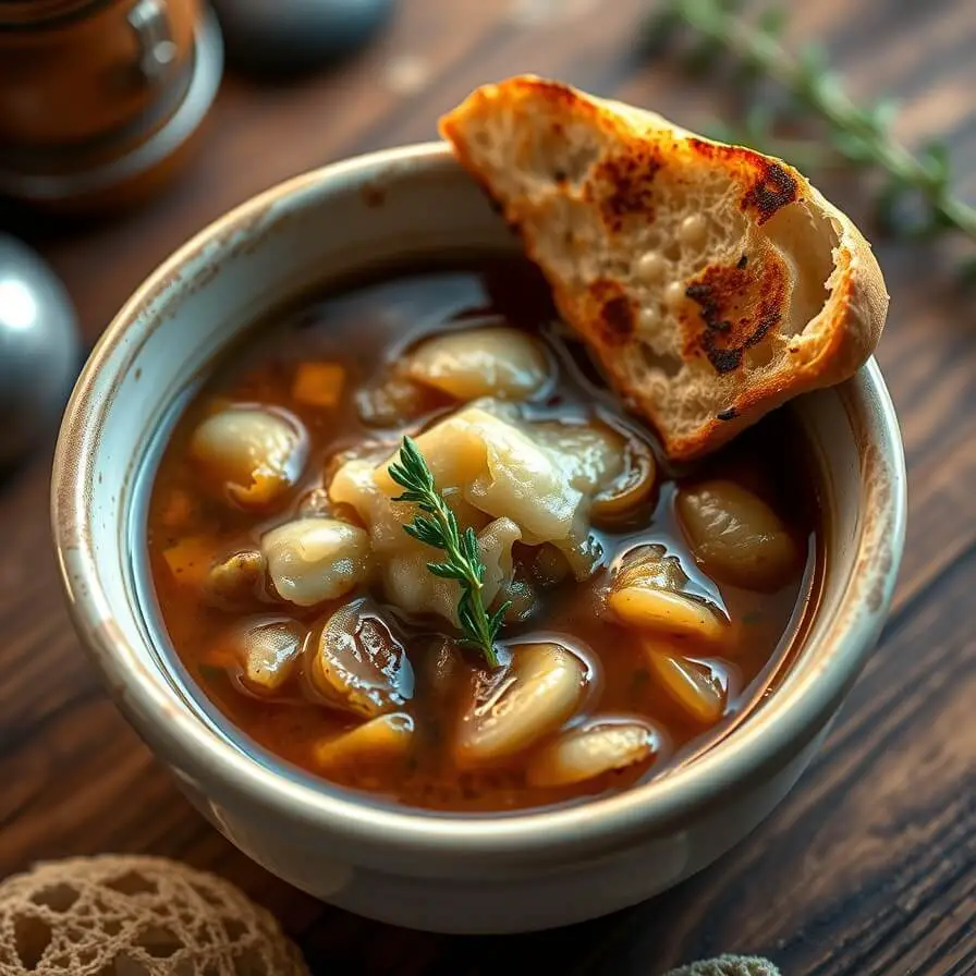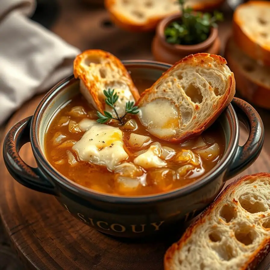 - Ladle soup into oven-safe bowls, top with toasted bread and Gruyère cheese. Broil 2–4 minutes until bubbly and golden. Serve immediately.