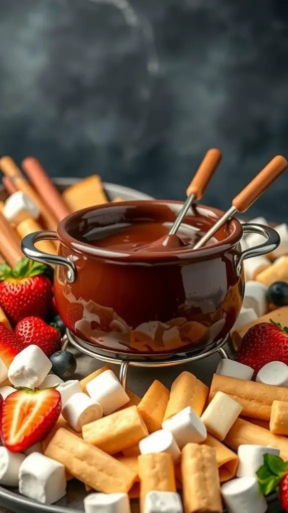 To make the fondue, simply melt chocolate with a bit of cream over low heat until smooth. Transfer it to a fondue pot to keep it warm. Provide skewers for easy dipping. This setup not only looks appealing but also creates a cozy atmosphere.