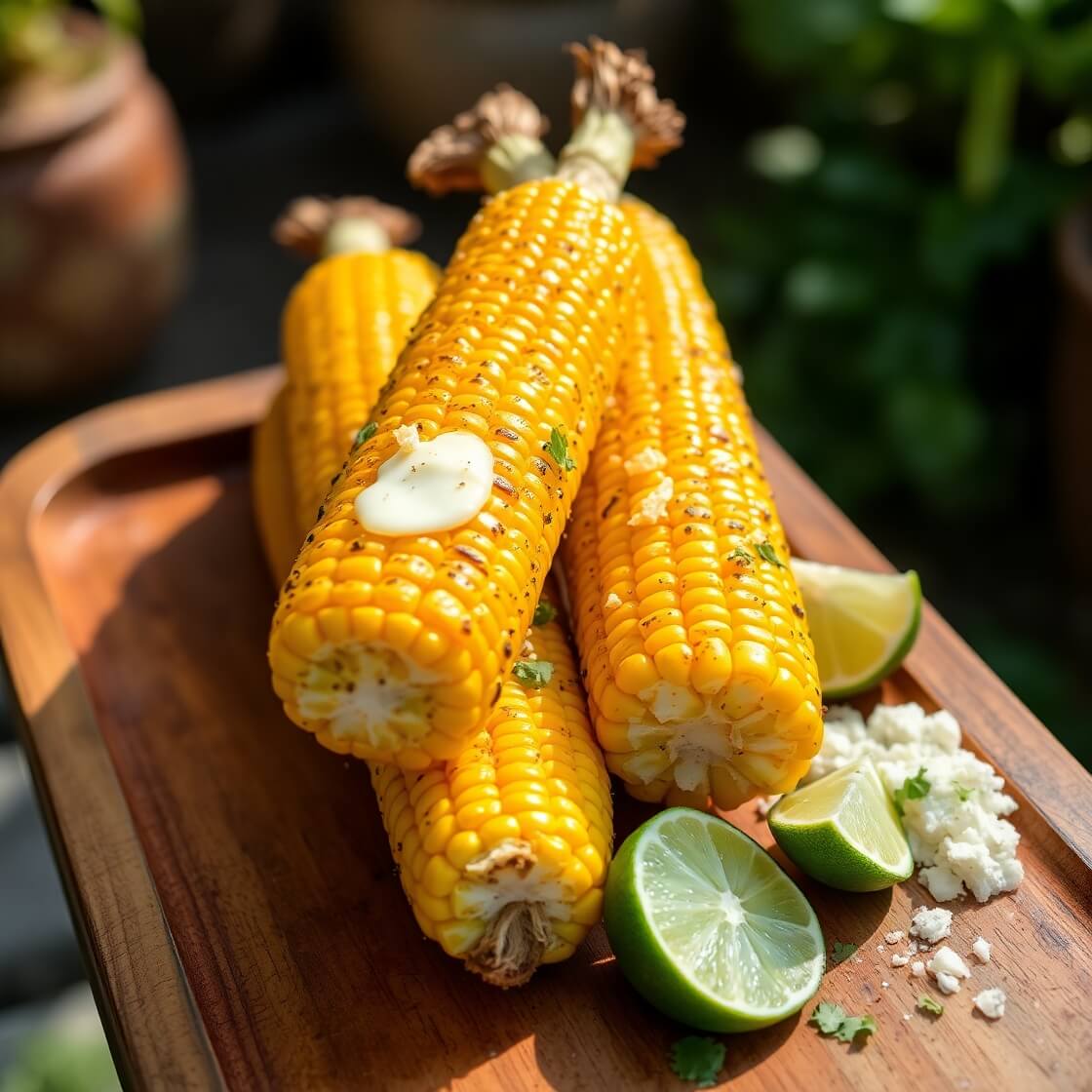 One of my favorite ways to serve grilled corn on the cob is on a large wooden cutting board or rustic serving tray. Stack the ears slightly on top of each other, then scatter a few lime wedges, a sprinkle of chopped cilantro or parsley, and a small bowl of melted butter or flavored mayo nearby.