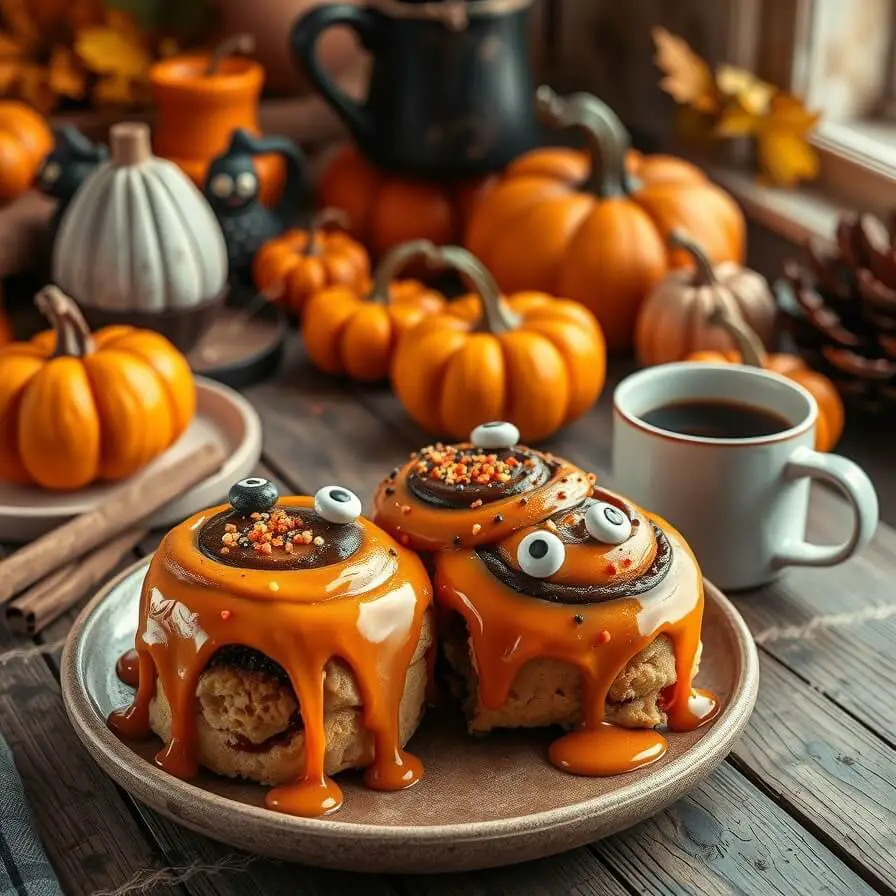 What truly makes these special is the decoration — the contrast of black cocoa icing, orange glaze, and playful candy eyes turns ordinary rolls into edible Halloween art. When I first made them, my kids started naming each roll (“this one’s the mummy,” “that one’s the pumpkin monster”). It’s become a little family tradition now — we bake, decorate, and giggle at the results together.
