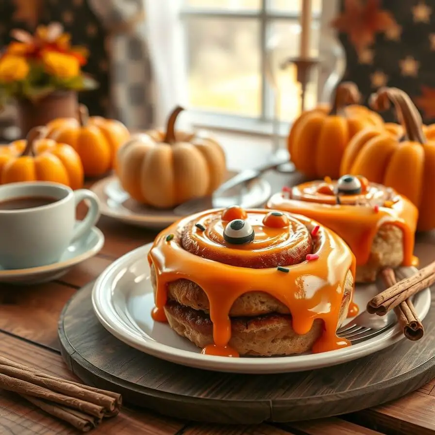 Candy eyeballs, Halloween sprinkles, mini chocolate chips, or even little drizzles of melted white chocolate can turn your cinnamon rolls into edible monsters or mummies.
