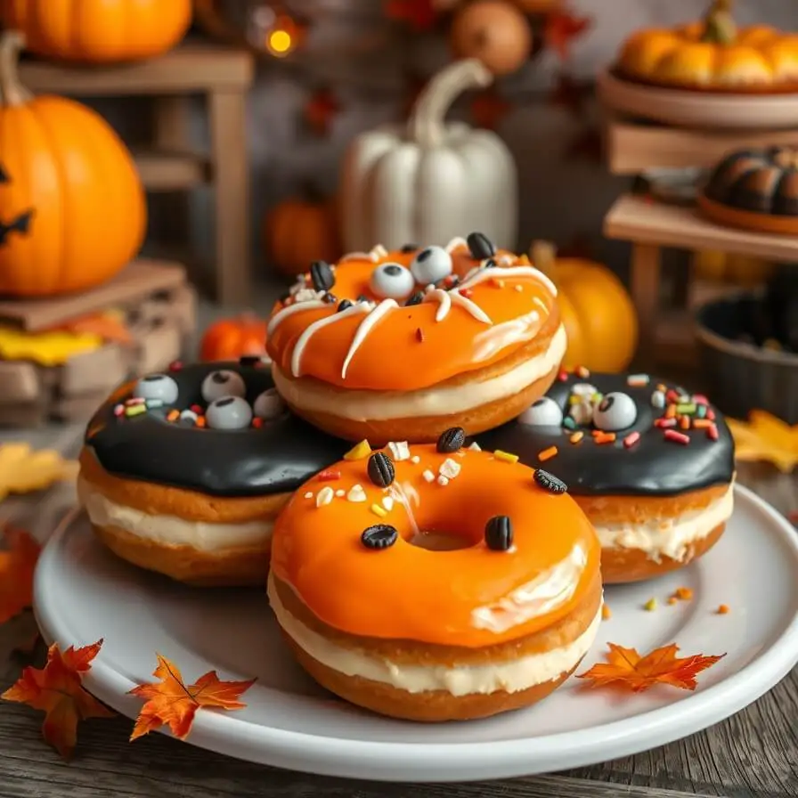 These Halloween donuts are soft, fluffy, and fun to decorate. Perfect for a festive family baking session or a party centerpiece, they allow endless creativity with glazes, sprinkles, and edible decorations. The combination of a tender donut base with sweet icing and playful toppings makes them irresistible to kids and adults alike. From ghost shapes to pumpkin faces, this recipe is easy to customize while delivering consistently delicious results. Whether baked for a cozy autumn morning or a lively Halloween party, these donuts are sure to impress.