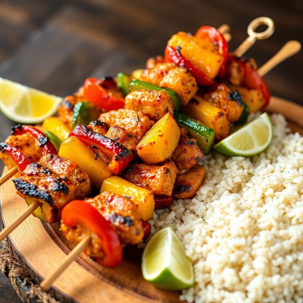 This balance of sweet fruit, savory chicken, and bold marinade makes every skewer irresistible.