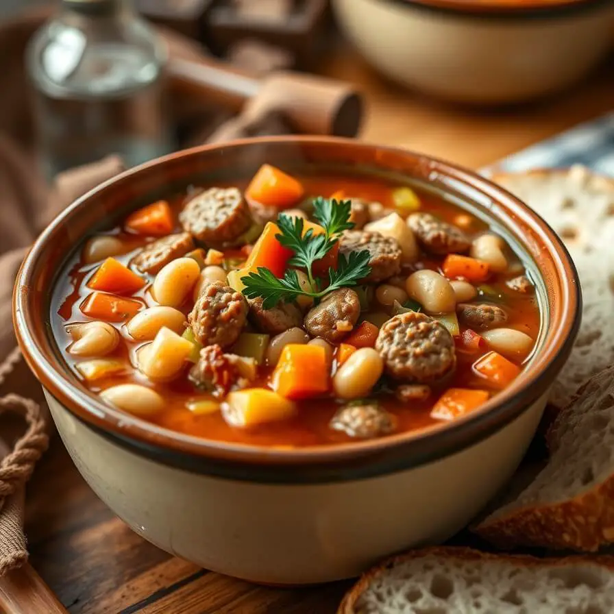 One of my favorite parts about making Italian Sausage Soup is serving it. There’s something so inviting about a steaming bowl of soup, garnished just right. For presentation, I like to ladle the soup into wide, shallow bowls so all the ingredients are visible—sausage, beans, colorful vegetables. Sprinkle freshly chopped parsley or basil on top; it not only adds a pop of color but a subtle freshness that brightens the dish.