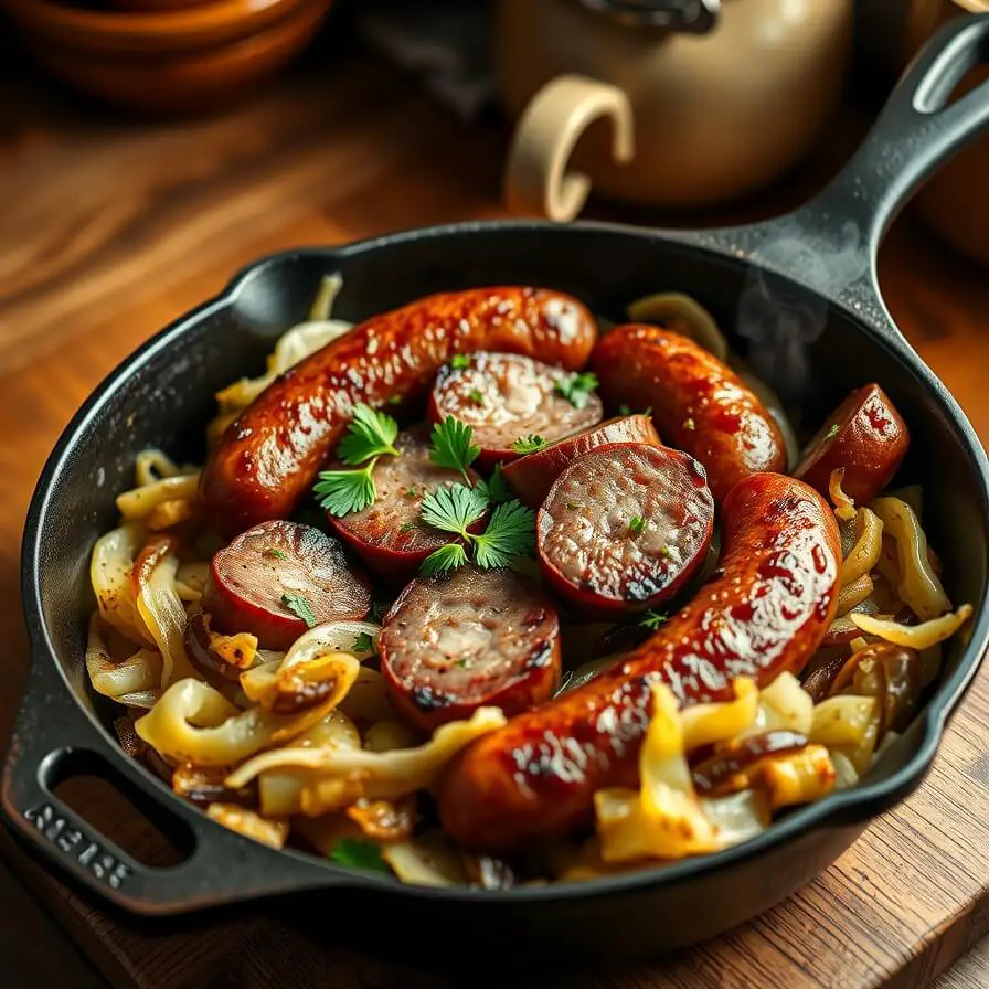 A comforting, one-skillet meal that brings together smoky kielbasa, tender sautéed cabbage, and buttery caramelized onions. This old-fashioned favorite is simple, hearty, and full of flavor—perfect for busy weeknights or cozy weekends. With just a handful of ingredients, it’s proof that comfort food doesn’t have to be complicated. The balance of smokiness, sweetness, and savory goodness makes every bite incredibly satisfying.