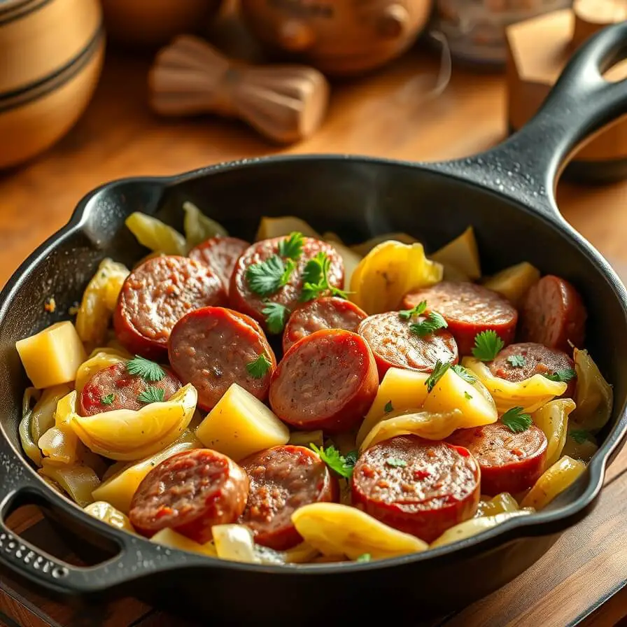 If you love a little heat, add a pinch of crushed red pepper flakes when you cook the cabbage. For a touch of sweetness, toss in a few slices of apple—yes, apple! It sounds unusual, but it pairs perfectly with the smoky sausage and savory cabbage.
