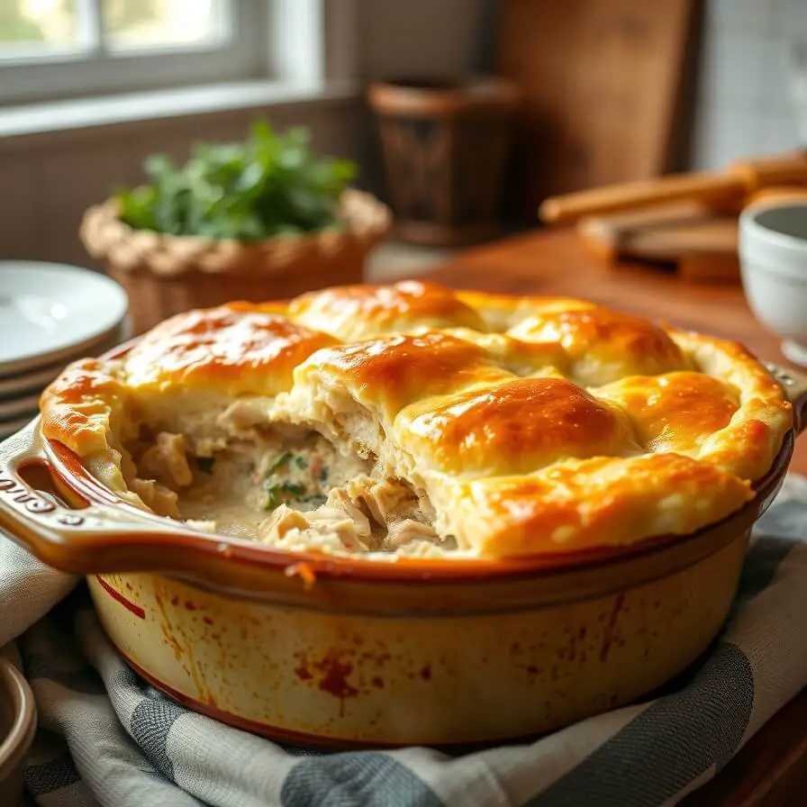 The creamy filling is packed with tender chicken, soft vegetables, and a savory sauce that’s just the right balance of rich and comforting. The biscuit topping bakes into a fluffy, golden layer that makes every spoonful feel indulgent. I also love that it’s flexible—you can swap vegetables, adjust seasonings, or even use store-bought ingredients if you’re really in a hurry.