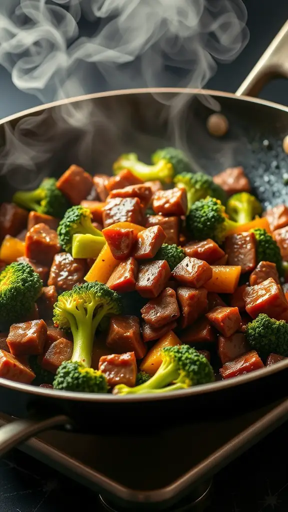 Beef and broccoli stir-fry is a classic dish that brings together tender beef and vibrant broccoli in a savory sauce. This meal is not only delicious but also low in carbs, making it perfect for family dinners. The bright colors of the vegetables and the rich brown of the beef create an inviting plate that everyone will love.