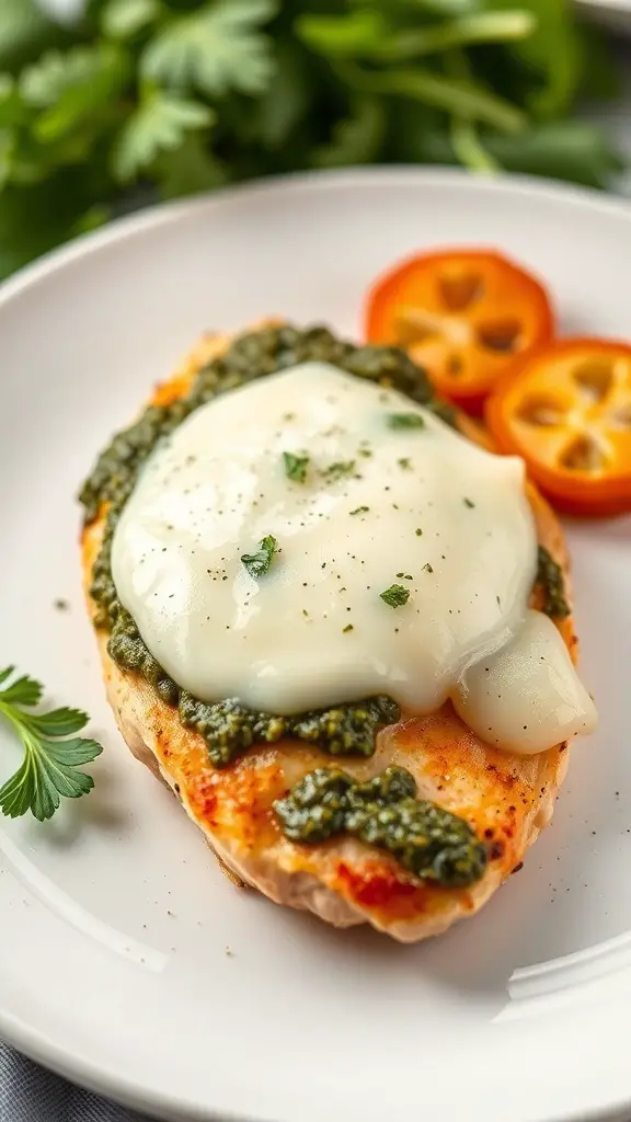 This Pesto Chicken Bake is a delightful dish that combines juicy chicken with rich pesto and creamy mozzarella. The vibrant green of the pesto adds a pop of color, while the melted cheese creates a comforting layer on top. This dish is perfect for a family dinner, especially for those looking to keep things low carb.