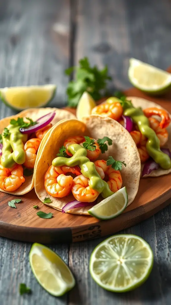 Start with succulent shrimp, seasoned just right. The avocado lime sauce adds a creamy texture and a zesty kick that perfectly complements the shrimp. Serve these tacos with fresh cilantro and lime wedges for an extra burst of flavor.