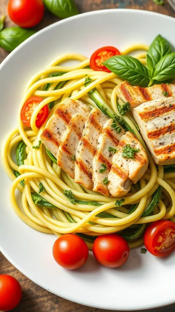 - Serve: Plate the zucchini noodles and top with sliced grilled chicken. Garnish with fresh basil leaves for an extra touch of flavor.