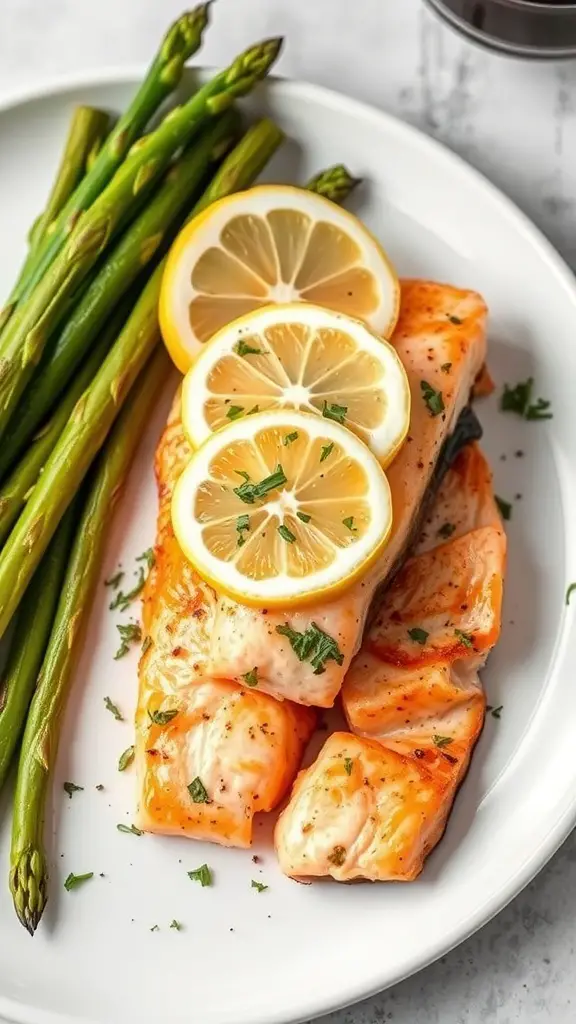 Grilling salmon is a fantastic way to keep it moist while infusing it with smoky flavors. The asparagus, seasoned and grilled alongside, adds a nutritious crunch to the meal. This dish is not only low in carbs but also packed with protein, making it a great choice for family dinners.