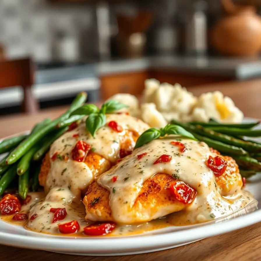 What makes it so special is how the ingredients work together. The chicken breasts (or thighs, if you prefer) are lightly coated, pan-seared until golden, and then bathed in a sauce made from heavy cream, Parmesan cheese, garlic, and those irresistible sun-dried tomatoes. The sauce clings beautifully to the chicken, creating a melt-in-your-mouth experience in every bite.