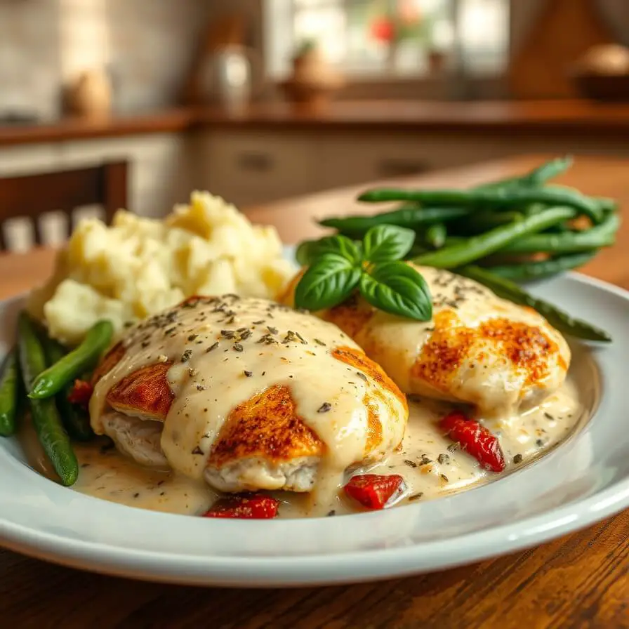 To serve, I like to spoon the creamy sauce generously over the chicken, letting it pool around the edges. Nestle it next to a mound of buttery mashed potatoes or a simple bed of pasta. Fresh herbs sprinkled on top — basil, thyme, or even a little parsley — add a pop of color and freshness. For an extra touch, drizzle a tiny bit of olive oil or a few shavings of Parmesan on top. Even simple plating elevates the dish and makes it feel like a restaurant experience at home.
