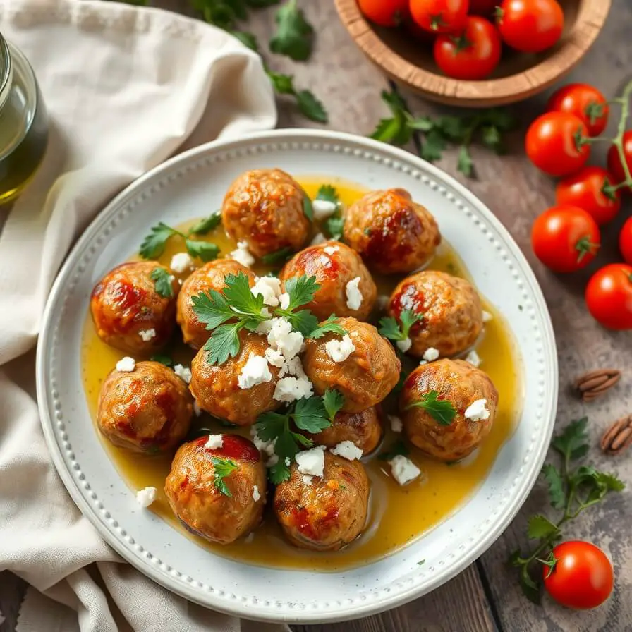 I usually start with a simple base of lemon herb couscous or fluffy rice, then arrange the meatballs in a neat circle or staggered rows. A sprinkle of freshly chopped parsley and a few crumbles of feta instantly elevates the look. Drizzling a little extra virgin olive oil or a squeeze of fresh lemon juice adds shine and makes the dish feel fresh. For a more festive touch, I sometimes add halved cherry tomatoes or a few kalamata olives around the meatballs—this little pop of color makes the plate irresistible.