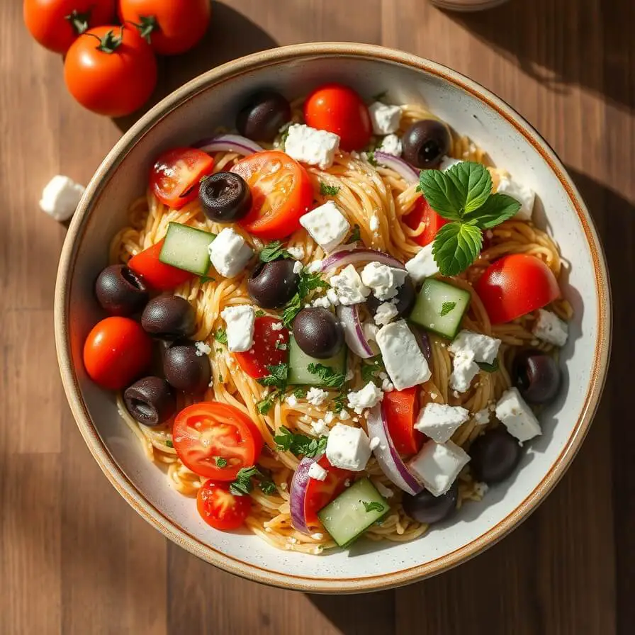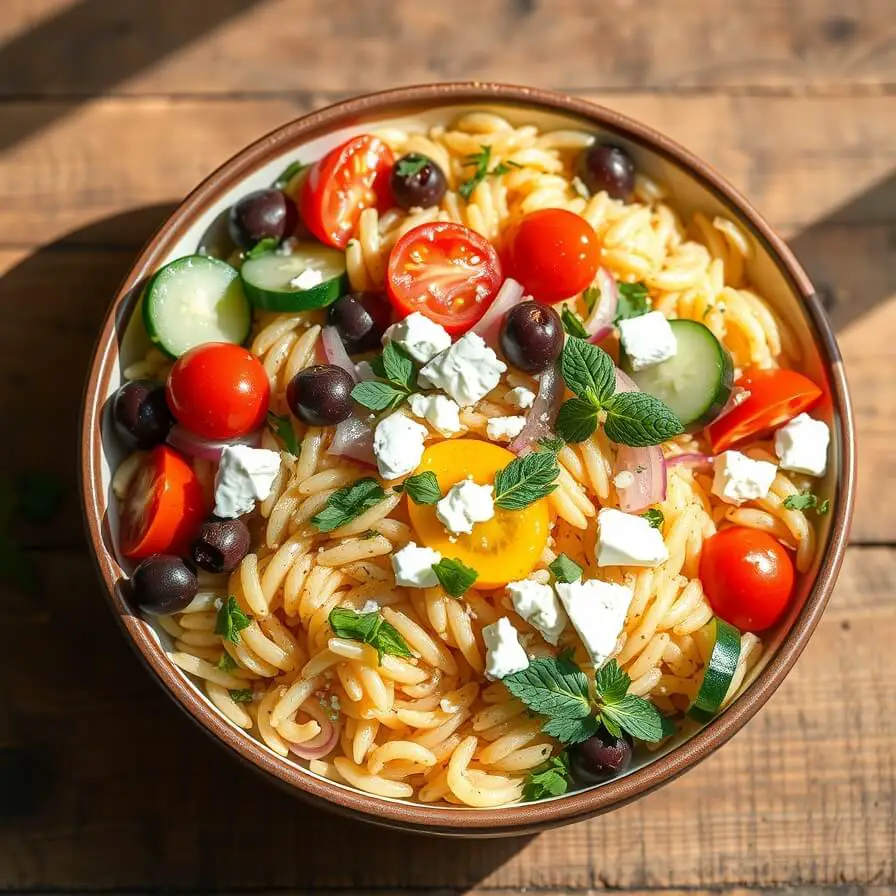 What surprised me the first time I made it was how quickly it came together despite tasting like something you’d order at a little Mediterranean café. There’s something charming about orzo—tiny pasta that looks almost like rice but carries bold flavors beautifully. Mix it with crisp cucumbers, sweet cherry tomatoes, briny olives, tangy feta, and a lemony olive-oil dressing, and the whole dish becomes the kind of meal you want to return to again and again.