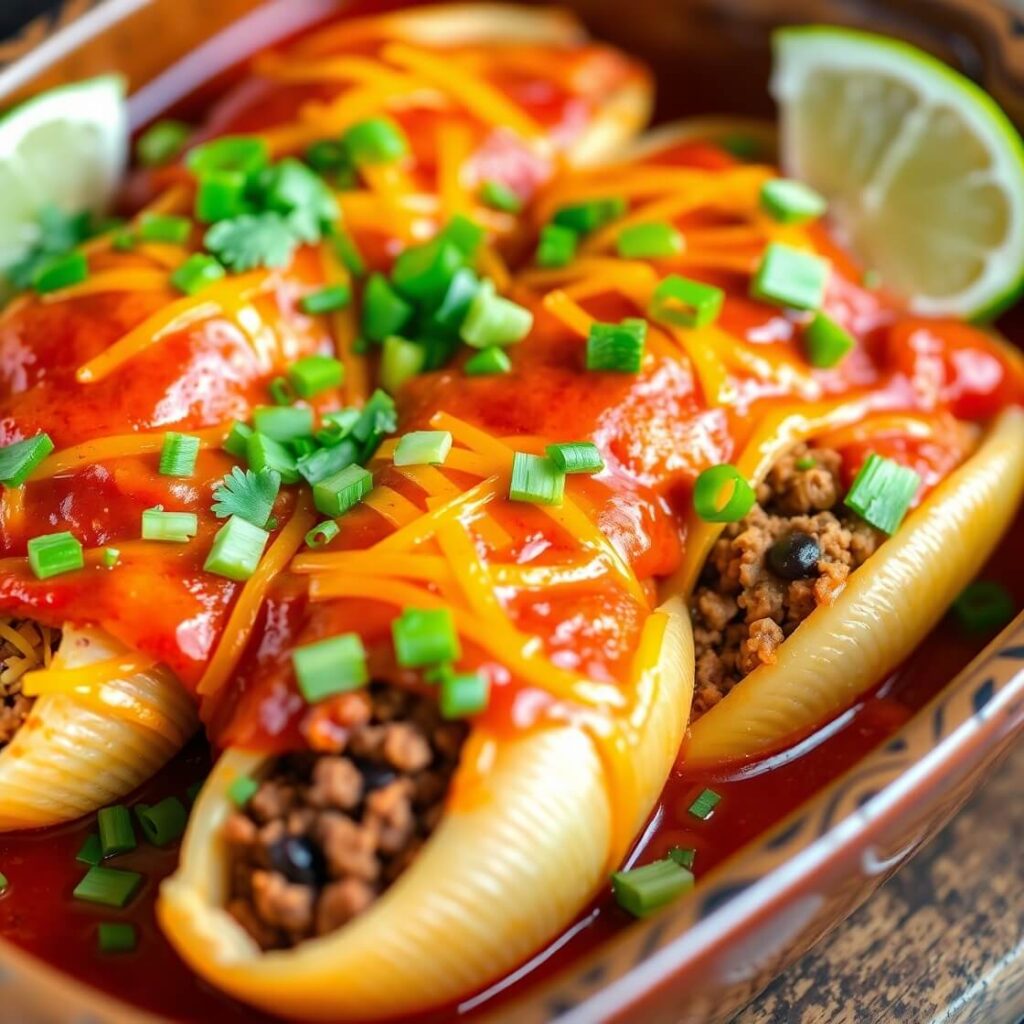 What’s not to love about a recipe that combines tender pasta shells, hearty seasoned filling, and ooey-gooey melted cheese topped with flavorful enchilada sauce? This recipe is special because it transforms a familiar dish into something bursting with bold, vibrant flavors.