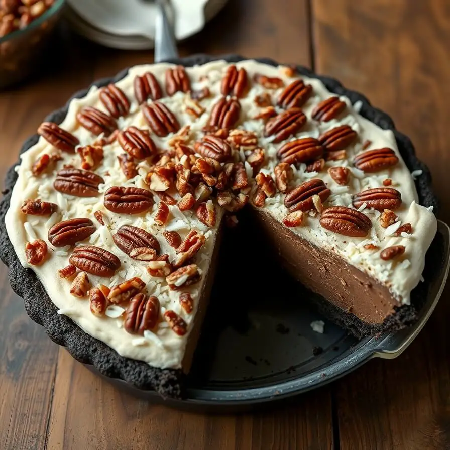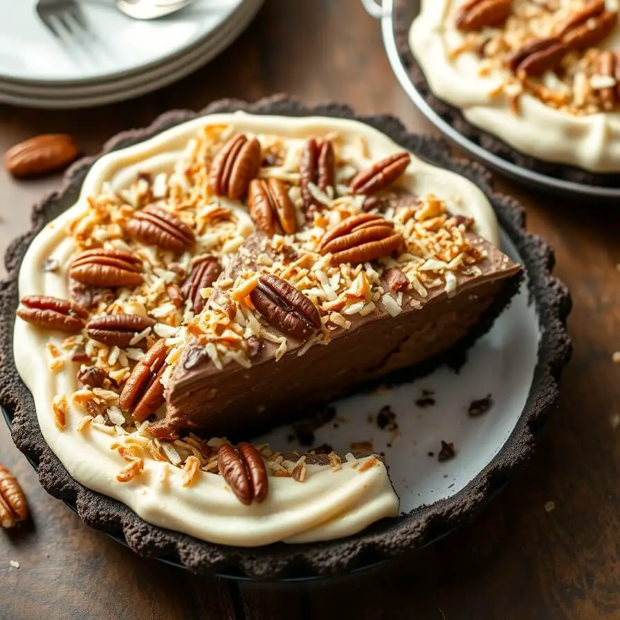 The first time I made it was on one of those warm afternoons when turning on the oven feels like a personal attack. I wanted something indulgent, something that tasted like I spent the whole day fussing in the kitchen… but without actually doing that. My family is obsessed with German chocolate cake, especially the gooey coconut-pecan frosting, so I wondered: what if I turned those exact flavors into a chilled, creamy pie?