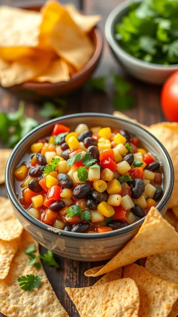 To make this salsa, you’ll need black beans, corn, diced tomatoes, red bell pepper, onion, and fresh cilantro. Just mix everything in a bowl, and you’re good to go! You can even add lime juice for a zesty kick.