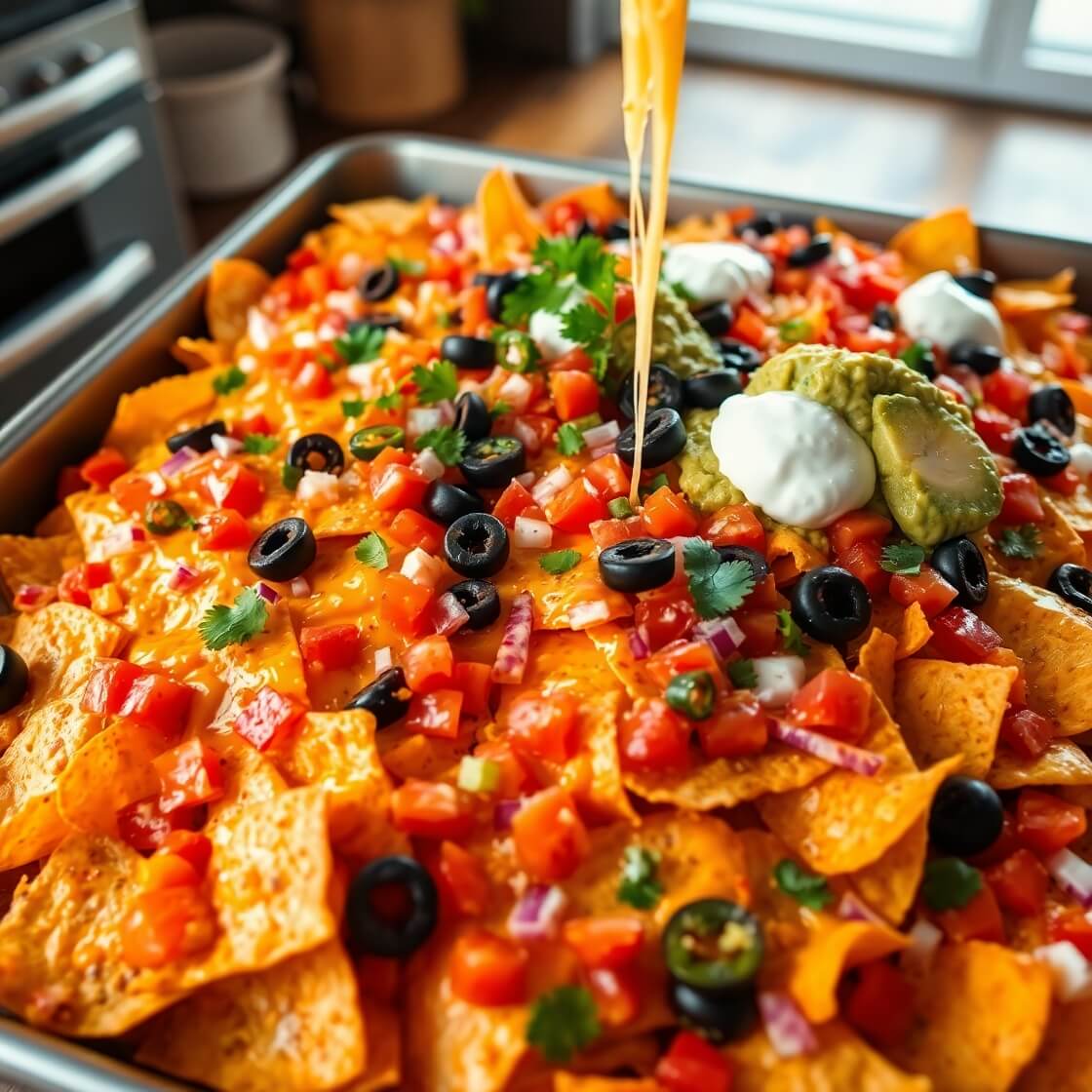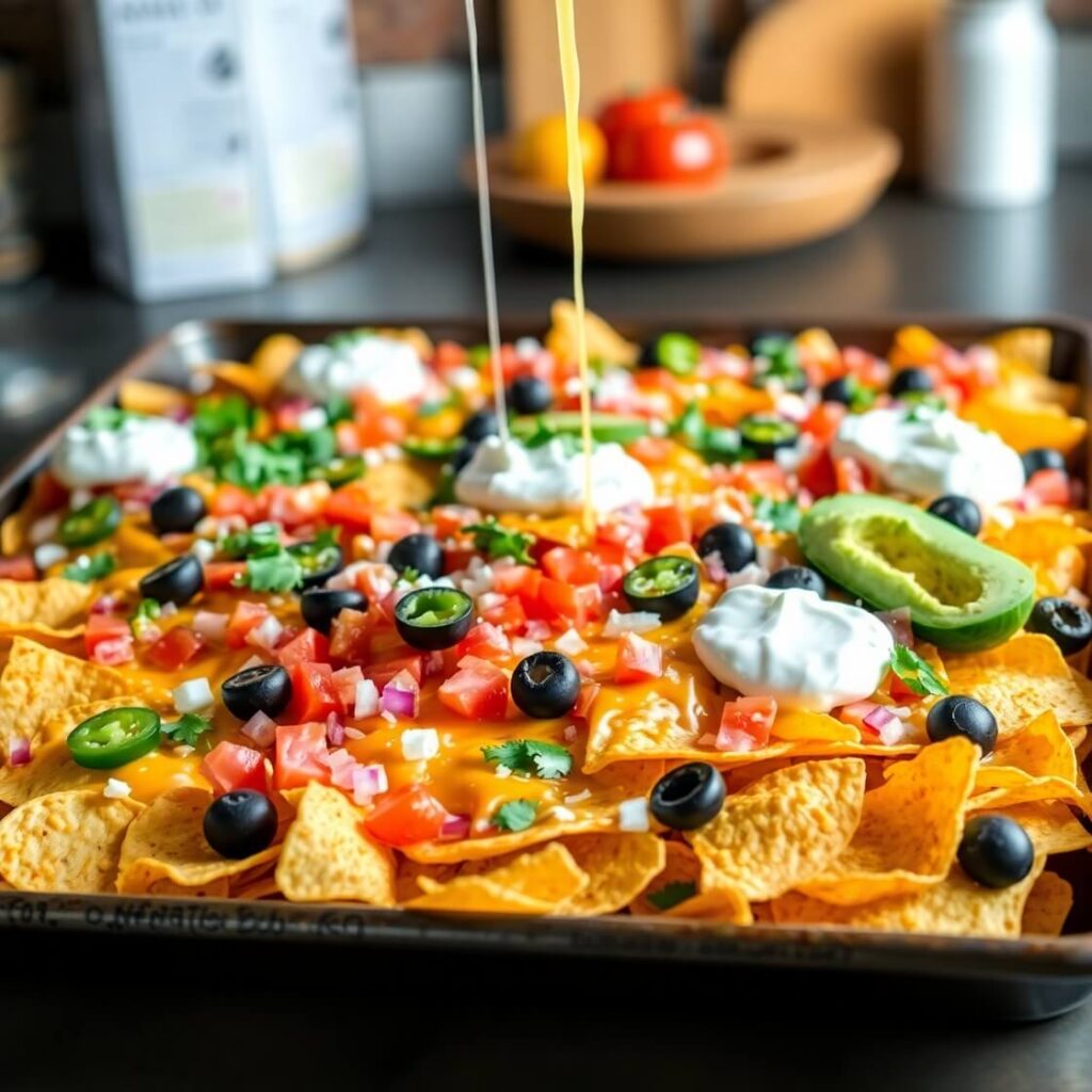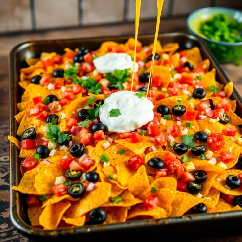 - Toppings: Black olives, green onions, and fresh cilantro elevate the nachos. For a creamy finish, dollops of sour cream or guacamole are perfect.
