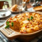 Step – 5: Transfer the mixture into your prepared baking dish. Dot the top with a few small pieces of butter to encourage browning. Cover loosely with foil and bake for 30 minutes, then remove the foil and bake an additional 15–20 minutes, until the top is golden brown and slightly crisp.